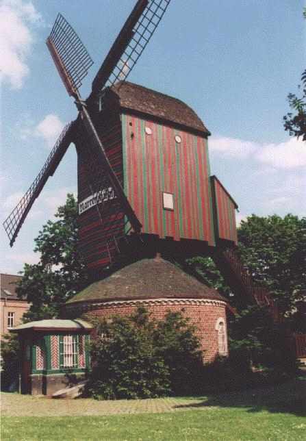 Die Dülkener Narrenmühle ist das Wahrzeichen unserer Stadt. Seit 1809 steht hier, damals noch vor dem Gladbacher Stadttor, eine Mühle. Ursprünglich die Holtz´sche Kornwindmühle, die aber 1906 stillgelegt wurde und von der Stadt aufgekauft wurde. Zuerst als städtisches Museum benutzt, wird sie 1950 an die Narrenakademie abgegeben, die von da an im unteren Teil ein Museum unterhält und im oberen Teil, im ´Weisheitssaal´, ihre Sitzungen abhält. Im Museum ist unter anderem ein Stück Mondgestein zu besichtigen, welches vom Ehrenmitglied Armstrong persönlich zur Verfügung gestellt wurde, vielleicht ist in einigen Jahren ja sogar ein Felsbrocken vom roten Nachbarplaneten, dem Mars, hier zu bewundern, wer weiß? Von hier aus nimmt auch 1905 die Straßenbahn ihren Dienst auf, um sich von Dülken über Viersen und später auch Süchteln ihren Weg nach Mönchengladbach zu bahnen. Die Endschleife an der Narrenmühle hat bis 1955 ihren Dienst getan, dann wurde ihr Dienst eingestellt. Aber zurück zu den Narren in Dülken, die am 11.11. jeden Jahres ihren Narrenritt um die Windmühle auf Steckenpferden veranstalten. Eine alte Tradition, die bis heute nichts von ihrem Reiz verloren hat. Die Karnevalszeit ist in Dülken immer schon was besonderes gewesen: nicht umsonst zieht hier am Rosenmontag der längste Karnevalszug des linken Niederrheins seine Bahnen durch ein völlig überfülltes Städtchen, das an diesem Tag viele Auswärtige nach Dülken lockt. Mit 152 Wagen, Fußgruppen und Musikkapellen (im Jahr 1997) ist er nicht nur bedeutend länger als in Viersen, Krefeld oder in Mönchengladbach, sondern auch viel schöner und reizvoller durch seine bunten, teils sehr aufwendig gestalteten Kostüme und Prunkwagen. Wer sich selbst davon überzeugen möchte, sollte schon früh morgens auf den Beinen sein, um noch ein schönes Fleckchen am Zugweg zu ergattern.